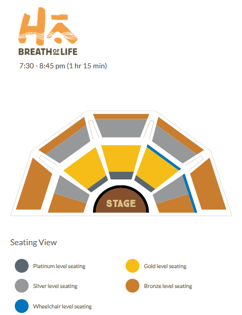 Children ages 0-3 years who do not have a paid ticket will need to sit on an adult's lap while attending the Ha: Breath of Life evening show.